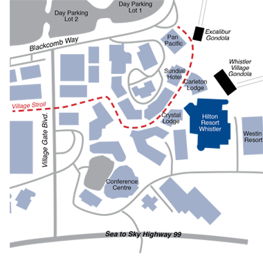 Our village office is located in the lobby level of the Hilton Resort Whistler, on Art Gallery Row. It is accessed just off the village stroll down a flight of stairs inbetween the Carleton Lodge and Crystal Lodge hotels.